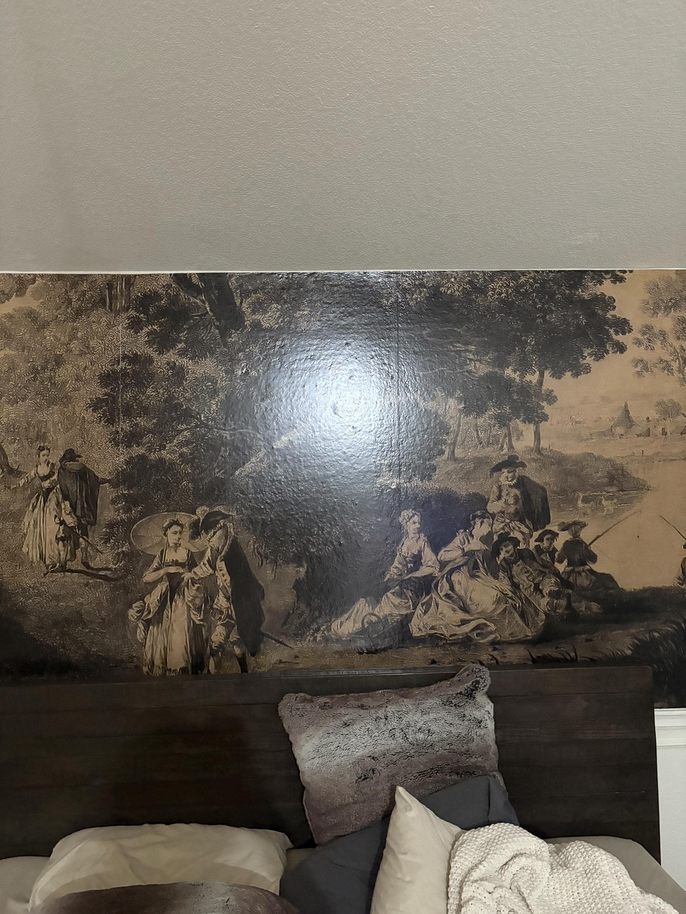 Not happy with the peel and stick wallpaper at all.. Here's why: - It's extremely glossy and reflects ANY light. A $400 wallpaper shouldn't be the same quality as a $3 Space Jam poster -If you have even slightly textured wall, don't bother. It's extremely thin so you will see every imperfection -The panels need to overlap about half an inch to line up correctly. This leaves 2 obvious creases -There's a useless white strip on the bottom of the panels. I had to cut them all off since I was applying from the bottom up -They only offered a $30 refund -GET A SAMPLE FIRST!