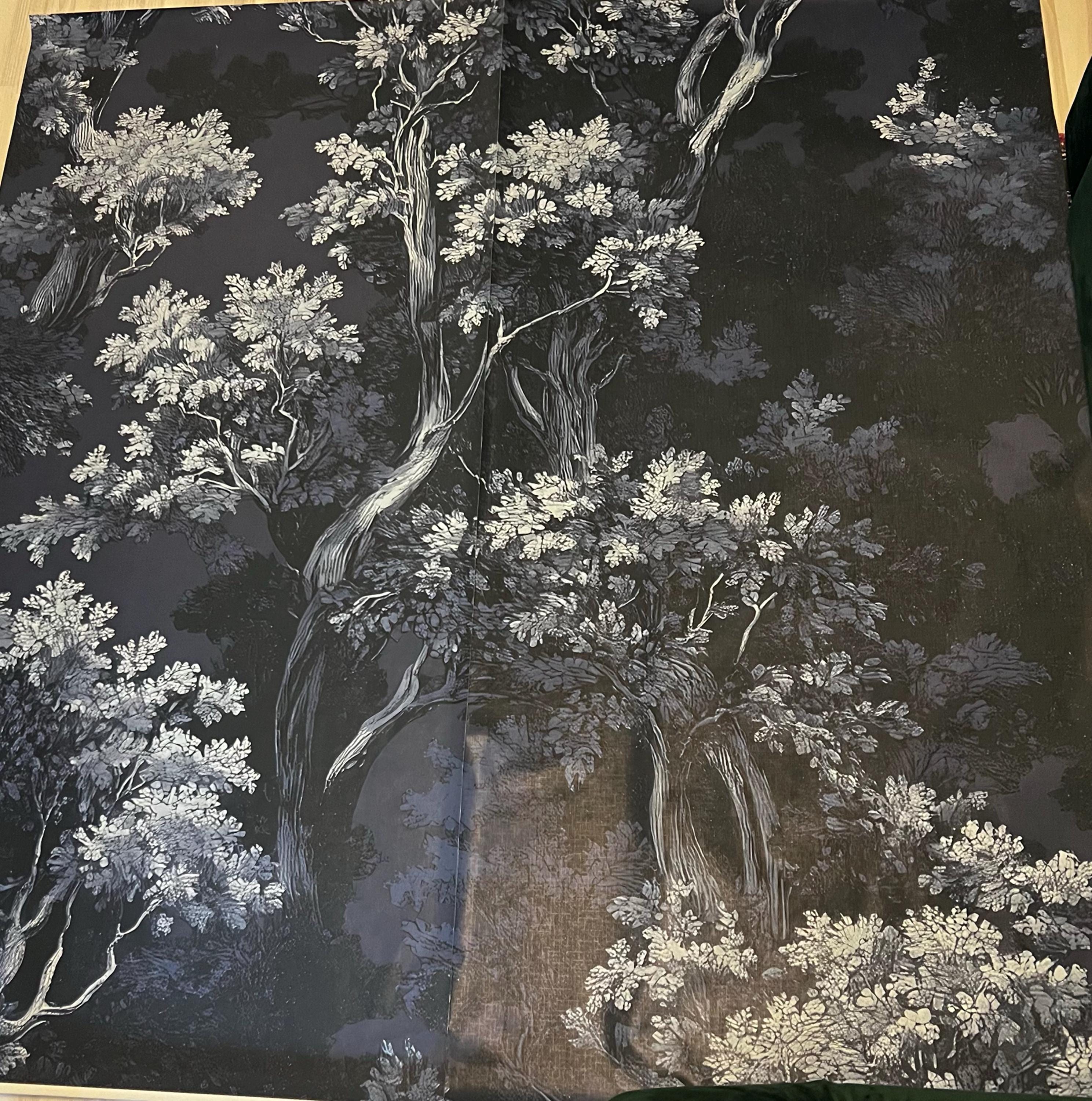 Dark Blue Forest Wallpaper - Midnight Vintage Toile Tree Pattern Peel and Stick Wall Mural