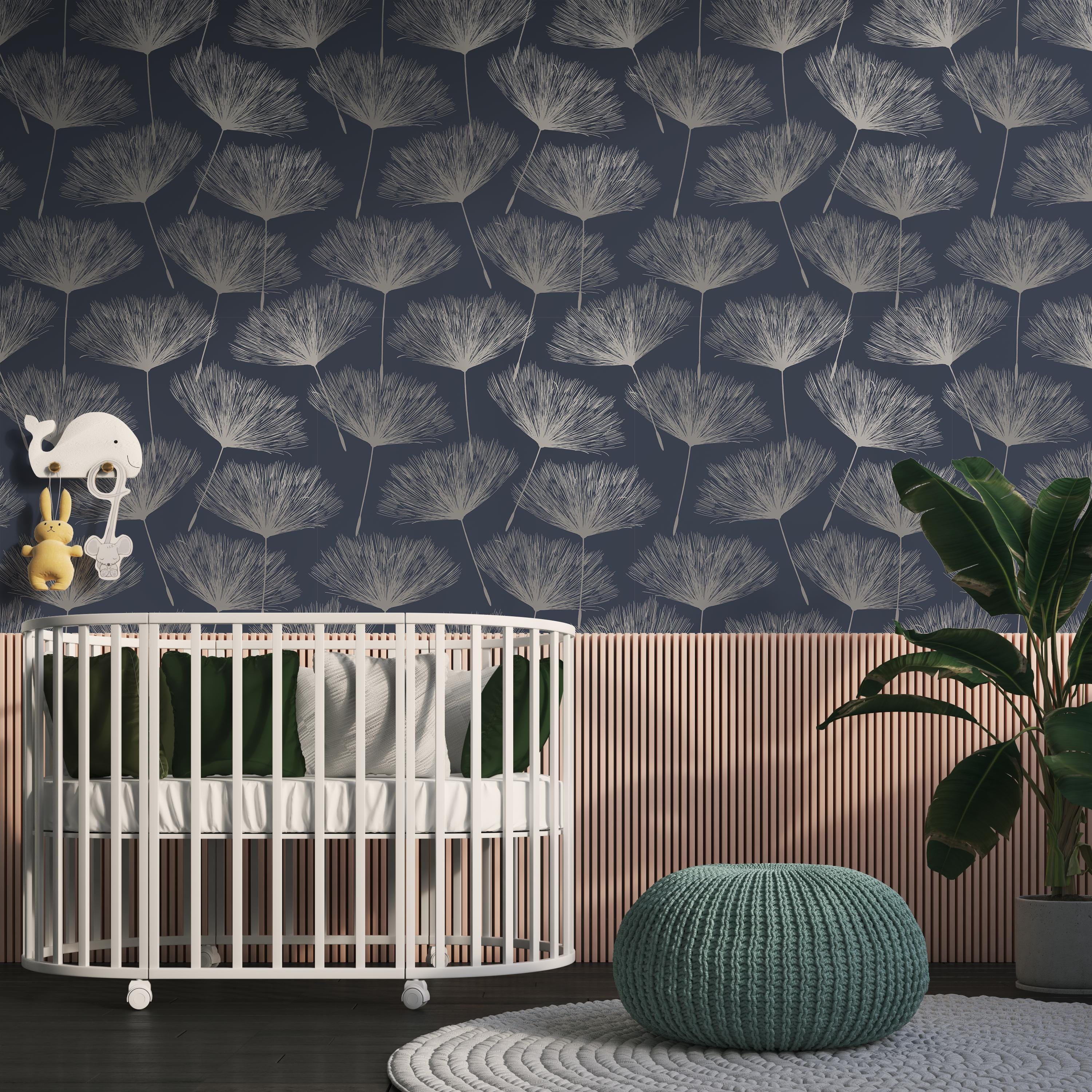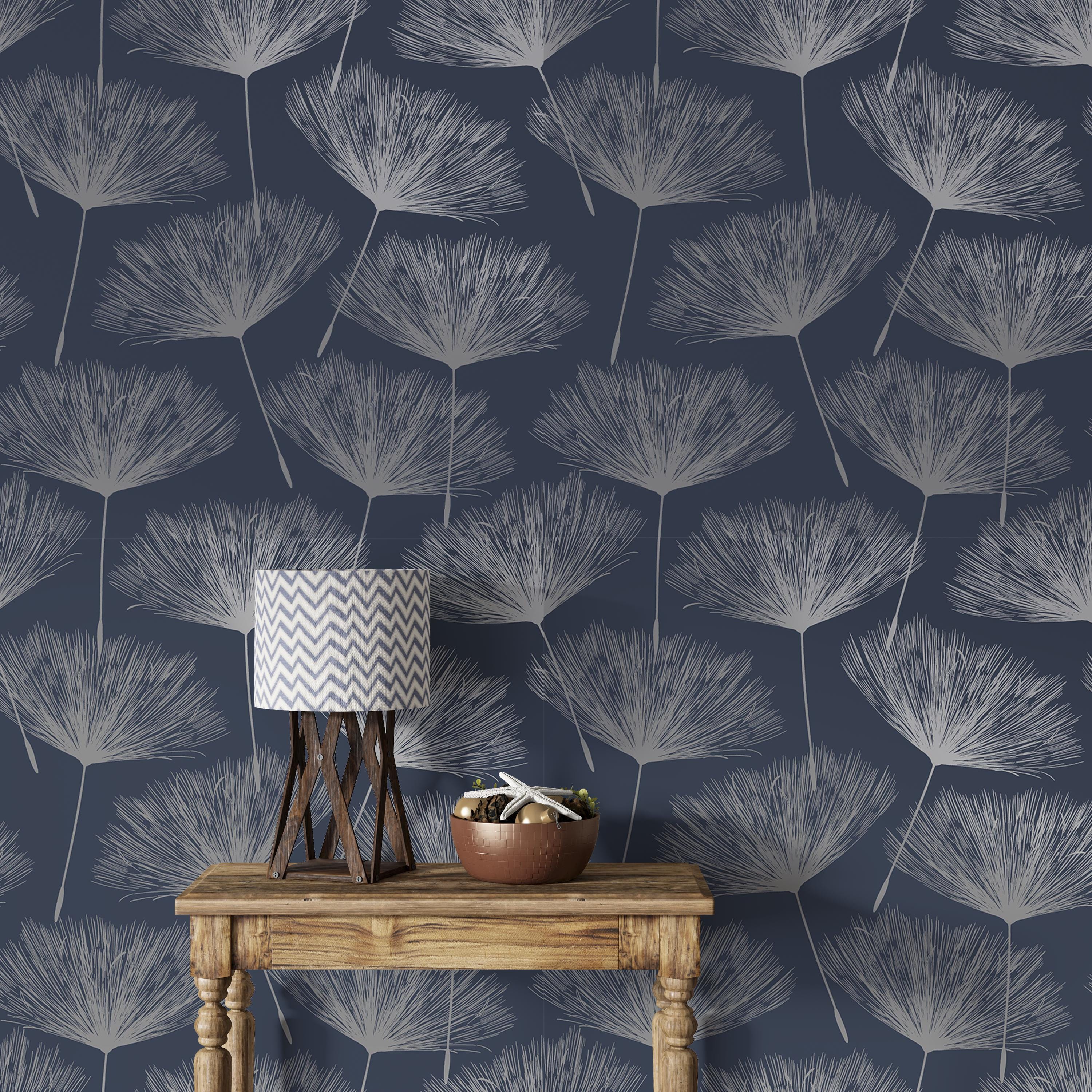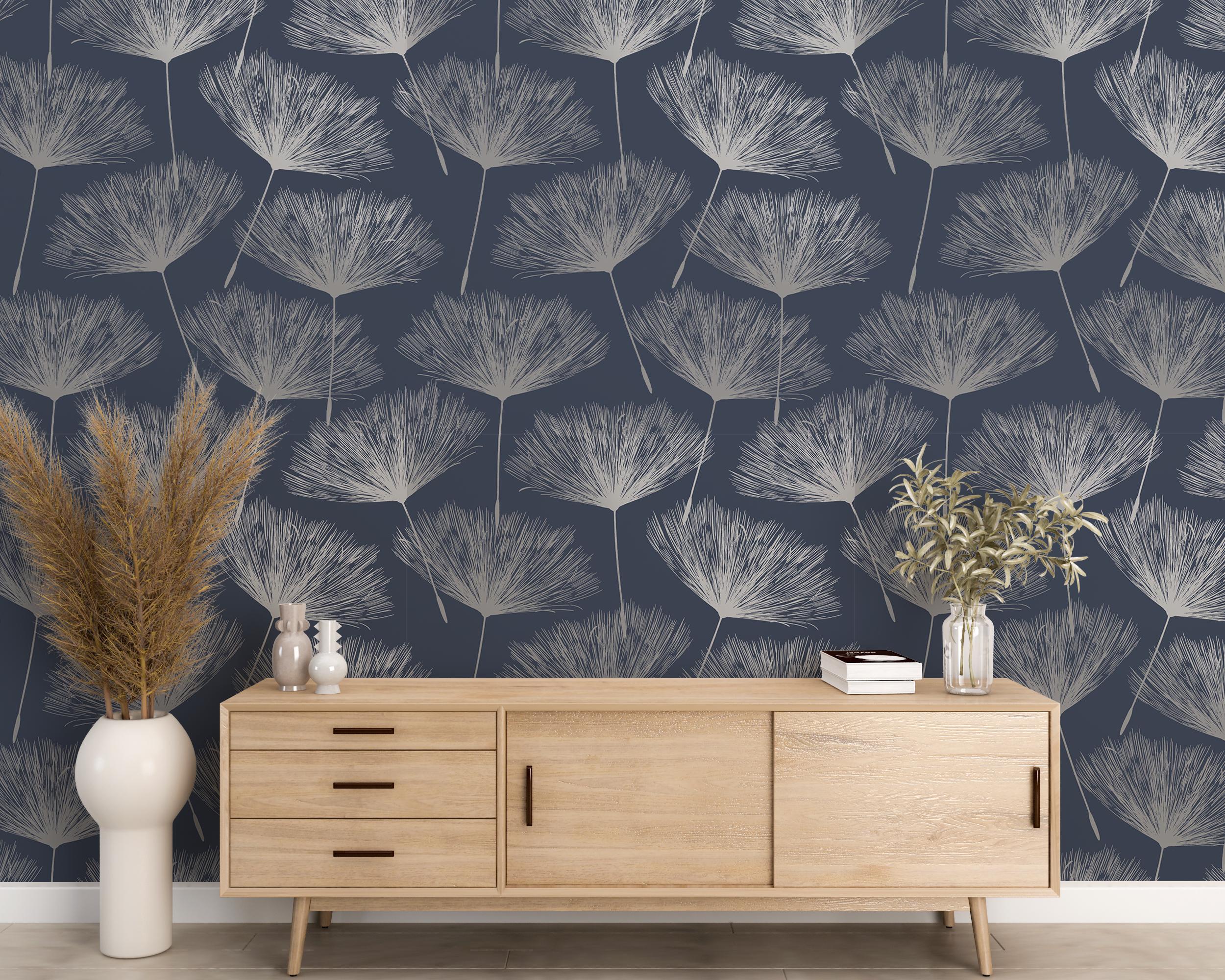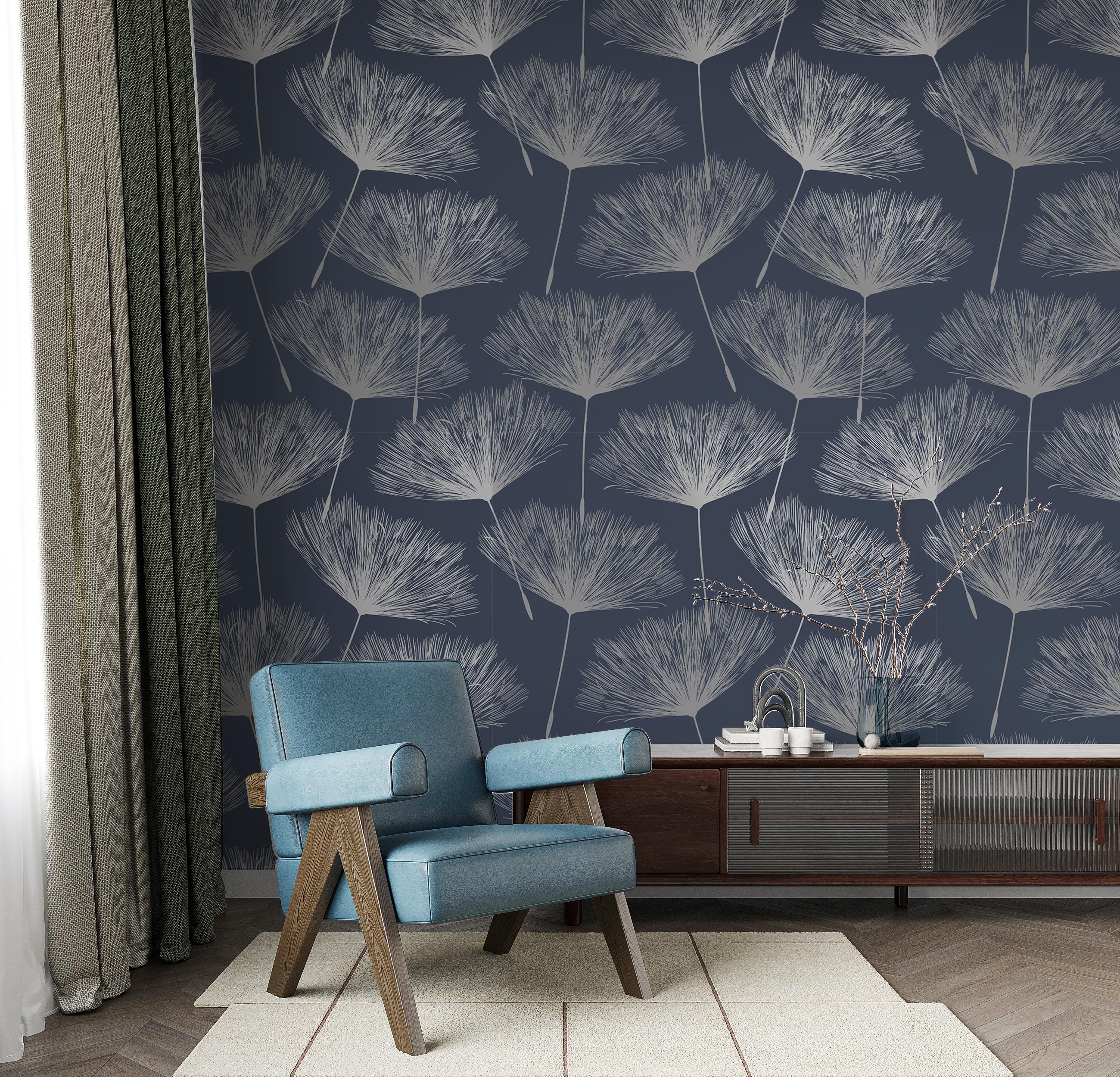 Dandelion Scandinavian Wallpaper - Modern Blue Floral Pattern Peel and Stick or Traditional Wall Mural